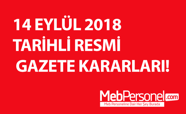 14 EYLÜL 2018 TARİHLİ RESMİ GAZETE KARARLARI!