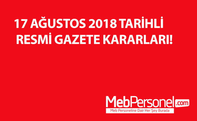 17 AĞUSTOS 2018 TARİHLİ RESMİ GAZETE KARARLARI!