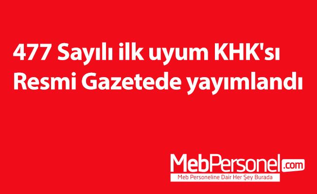 477 Sayılı ilk uyum KHK’sı Resmi Gazetede yayımlandı