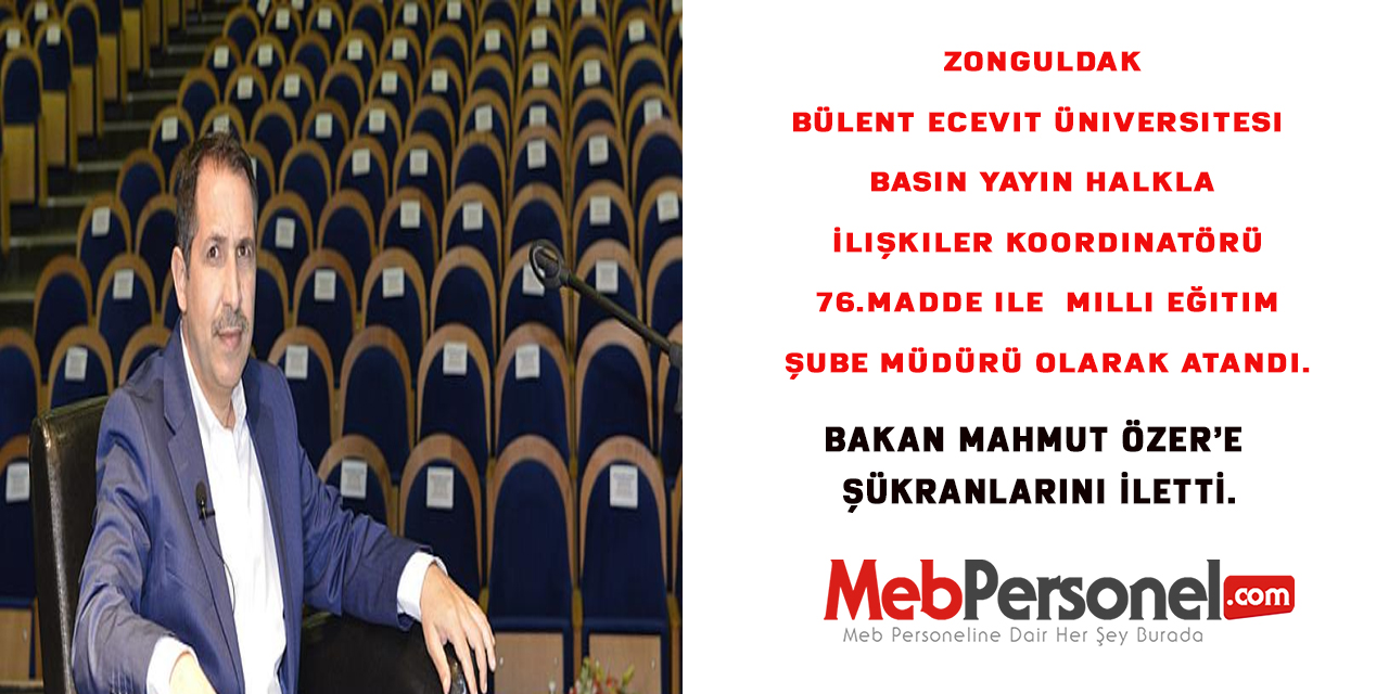 Zonguldak Bülent Ecevit Üniversitesi Basın Yayın Halkla İlişkiler Koordinatörü Fehmi Gür, 76.Madde ile İstanbul Beykoz Milli Eğitim Şube Müdürü olarak atandı ve Bakan Prof. Dr. Mahmut Özer’e şükranlarını arz etti.