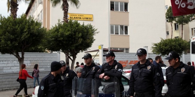Antalya’nın Alanya ilçesinde bir lisede öğrencilerin okumak istediği İzmir Marşı’na yasak getirildiği iddiası üzerine okul önünde toplanan grup, protestoda bulundu.