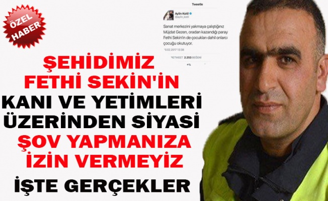 Geçtiğimiz günlerde İstanbul’da Müjdat Gezen sanat merkezini yakma girişiminden sonra müzmin muhalif ve uslanmaz sol medya ile beraber tribünlerinin amigosu Aylin Kotil , Müjdat Gezen’i savunma ve İslami camiaya saldırı yapmak adına İzmir şehidimiz Fethi SEKİN’in çocuklarını istismar edip kendine kalkan yapma adına aşağıdaki twiti attı .