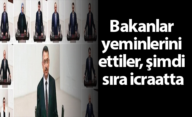 Cumhurbaşkanı Recep Tayyip Erdoğan’ın ardından dün Cumhurbaşkanlığı Hükümet Sisteminin ilk kabine üyeleri TBMM Genel Kurulu’na gelerek yeminlerini etti. Böylece Türkiye’nin yeni yönetim modeli Cumhurbaşkanlığı Hükümet Sistemi’nin, resmen hayata geçirilmesi için yasal tüm adımlar tamamlanmış oldu. Kabine üyeleri, Meclis Genel Kurulu’ndaki yeminleriyle görevlerine başlamış oldu. Cuma günü Cumhurbaşkanı’nın başkanlığındaki ilk kabine toplantısıyla da icraat dönemi başlayacak.