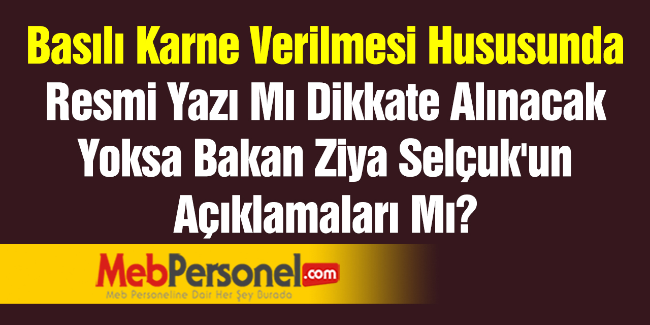 Basılı Karne Verilmesi Hususunda Resmi Yazı Mı Dikkate Alınacak Yoksa Bakan Ziya Selçuk’un Açıklamaları Mı?