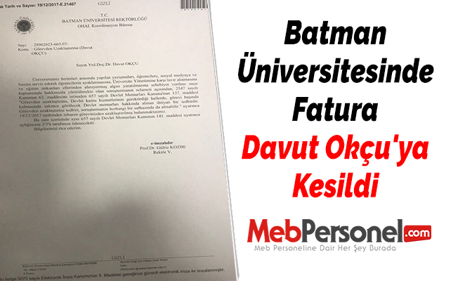 Bu konunun basında yer alması üzerine fatura Davut Okçu’ya kesildi. Konuyla ilgili suçlu kişi Davut Okçu’ymuş gibi gösterilerek görevden uzaklaştırıldı.