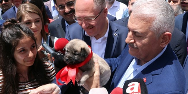 Öte yandan belediye ziyaretinde Bilgin, Yıldırım’a Kangal köpeği yavrusu hediye etti.