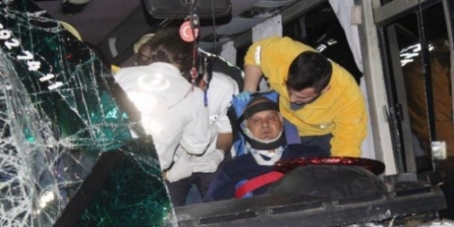 Öğrencileri taşıyan midibüsün şoförü Dinçer Yiğit, itfaiye ekiplerince sıkıştığı araçtan çıkartıldı.