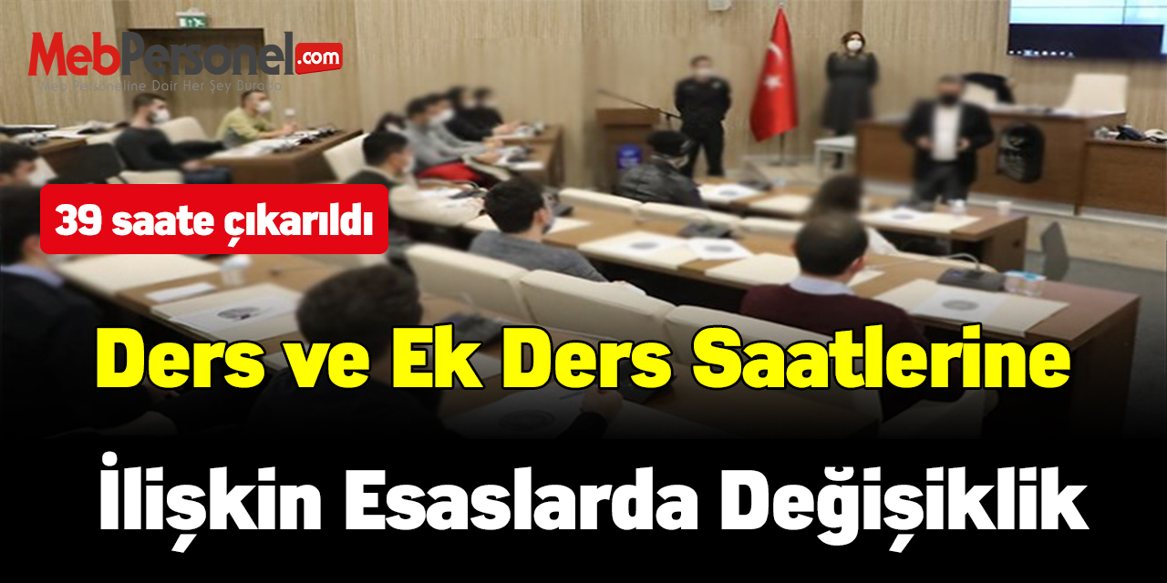 Aile, Çalışma ve Sosyal Hizmetler Bakanlığı Ders ve Ek Ders Saatlerine İlişkin Esaslarında değişiklik yapıldı. Yapılan değişikliğe göre; hizmet içi eğitim, kurs ve seminer faaliyetleri ile hizmet alanlara yönelik psiko-sosyal destek programı, beden eğitimi ve spor çalışmaları ile müsabaka, kamp, izcilik, müzik, halk oyunları ve güzel sanatlarla ilgili dallarda ücretli ders görevi alacak olan eğitim görevlilerinden; Resmi görev bulunmayanlara haftada (35) saate tanından imkan 39 saate çıkarıldı.