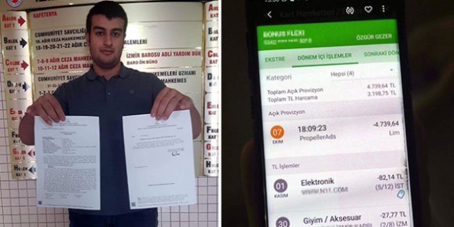 İzmir’de bir otelde çalışan Özgür Gezer (24), 7 Ekim Pazartesi e-kitap okumak için bir internet sitesi aracılığıyla cep telefonuna pdf dosyası indirdi. Telefonuna virüs bulaşması nedeniyle hiçbir işlem yapamayan Gezer, dolandırıldığını bir gün sonra para çekmek için gittiği bankamatikte anladı. Hesabındaki 3 bin 95 liranın kredi kartına aktarıldığını anlatan Gezer, “Telefonumdan internete girip bir kitap indirmek istemiştim. O sırada ekranda bazı yazılar dökülmeye başladı. Kullanılamaz hale gelen telefonumu fabrika ayarlarına çevirdim. Daha sonra telefonumdaki uygulamaları tekrar yükledim. Ancak maaş hesabımın bulunduğu bankanın mobil uygulamasına giriş yapamadım. Ertesi gün kartımdan para çekmek için bankamatiğe gittim ve hesabımdaki 3 bin 95 liranın kredi kartına aktarıldığını gördüm” dedi. Kredi kartı bloke olduğu için banka şubesine başvuran Gezer, “Bankaya hesabımdaki işlemi benim gerçekleştirmediğimi söyledim. Ancak o sırada kredi kartım bloke olmuştu. Banka da işlem yapmak için genel müdürlükten referans numarası istedi. Kredi kartımdan 4 bin 739 TL çekilmiş. Dilekçeyle itiraz ettim. Ancak 9 Ekim’de red cevabı geldi. Bu parayı iade edemeyeceklerini söylediler” diye konuştu.