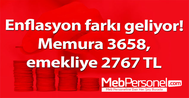 Enflasyon farkı geliyor! Memura 3658, emekliye 2767 TL .2020 yılının ilk zamlı maaşını ve promosyonun alan emekliler ve memurlar diğer yandan Temmuz ayında yapılacak olan zammı da merakla bekliyor. Milyonlar emekli ve memur Temmuz ayında zam ve enflasyon farkı sayesinde zamlı maaşlarını alacak. SSK ve Bağ-Kur emeklilerinin Temmuz zammını bu yılın ilk 6 aylık döneminde gerçekleşecek enflasyon gösterirken, memurların ve memur emeklilerinin artışı ise belli. Hakem kurulu kararı doğrultusunda, memurlara ve emeklilerine yüzde 4 zam ve bu yılın ilk yarısındaki TÜFE yüzde 4’ü aşarsa enflasyon farkı yansıtılacak.