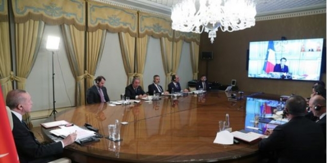 Cumhurbaşkanı Recep Tayyip Erdoğan, Fransa Cumhurbaşkanı Emmanuel Macron, Almanya Başbakanı Angela Merkel ve İngiltere Başbakanı Boris Johnson’la video konferans görüşmesi gerçekleştirdi.