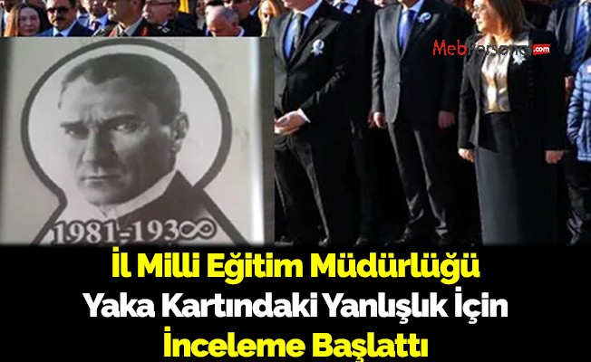 İl Milli Eğitim Müdürlüğünden yapılan açıklamada, Gaziantep’te, Cumhuriyet’in kurucusu, Başöğretmen Mustafa Kemal Atatürk’ün ebediyete intikalinin 81. yılı anısına düzenlenen çelenk koyma töreninde görevli okul müdürlüğünce hazırlatılan ve dağıtılan yaka kartında Mustafa Kemal Atatürk’ün doğum tarihinin yanlış yazıldığının belirlendiği aktarıldı.