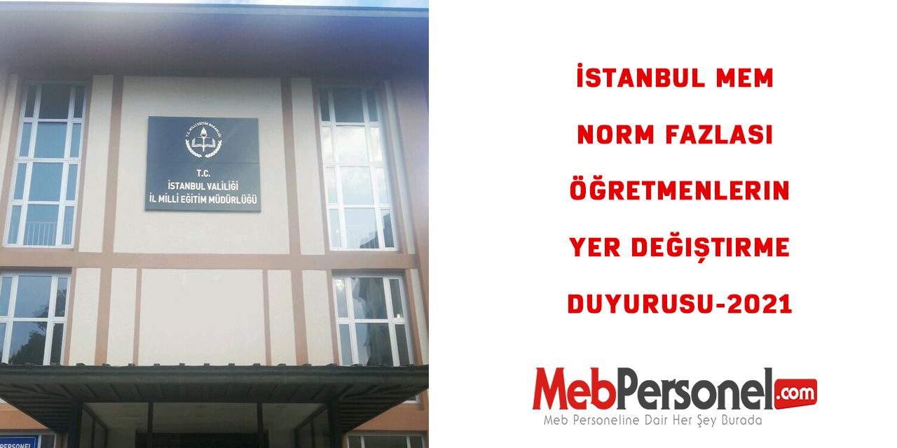 İstanbul Milli Eğititim Müdürlüğü bünyesinde resmi eğitim kurumlarında kadrolu olarak görev yapan öğretmenlerden ilgi (a) Yönetmeliğin 53. Maddesi kapsamında kurumlarında norm kadro fazlası olanların yer değiştirme iş ve işlemleri ekli kılavuz doğrutusunda yapılacaktır.