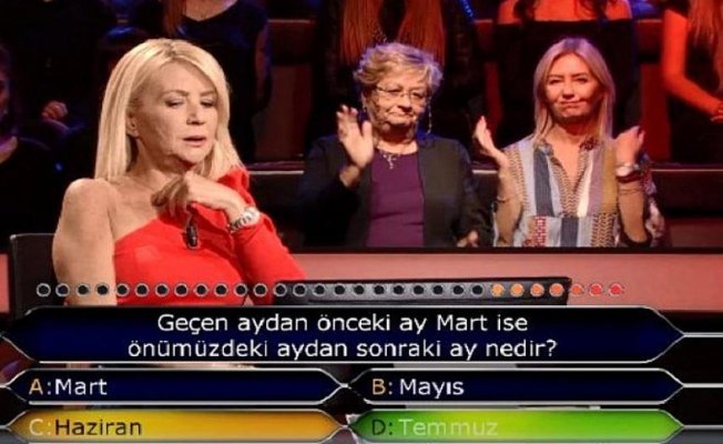 Kenan İmirzalıoğlu’nun soruyu okumasıyla afallayan Şenbülbül, zaman kısıtlaması olan soruda, bir süre düşündükten sonra, ”Nisandan önceki Mart ise, Mayıs’tan sonraki ay Haziran” yorumunu yaptı.