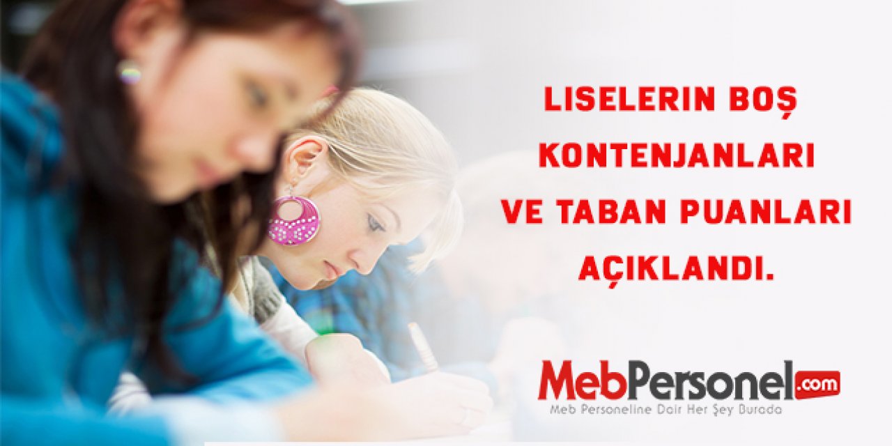Liselerin yerleştirme sonuçlarına göre oluşan taban puanları ile boş kontenjanlarına “e-okul.meb.gov.tr” internet adresinden ulaşılabiliyor.