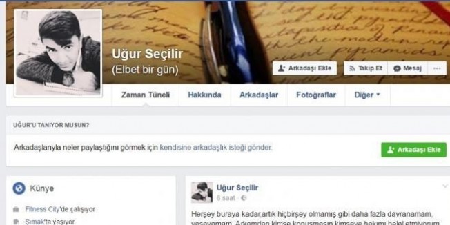 Seçilir çiftinin 2 kız ve 2 erkek olmak üzere 4 çocuktan en büyüğü olan Uğur Seçilir, intihar etmeden birkaç saat önce sosyal paylaşım sitesi facebook’taki sayfasından bir yazı paylaştığı görüldü. Çevresindeki kişileri suçlayan Uğur Seçilir’in paylaştığı yazı şöyle:
