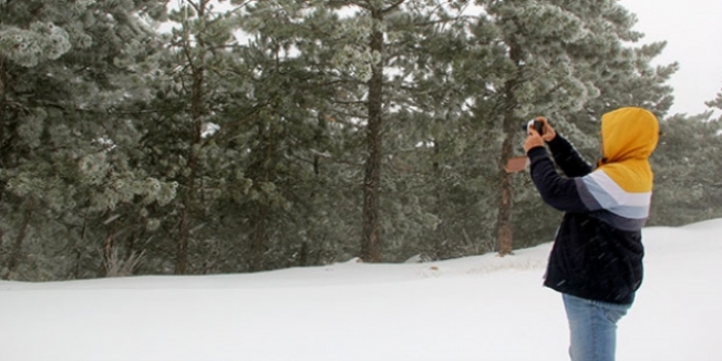 Dağın Atalanı mevkisinde kar kalınlığı 10 santimetreyi bulurken, bin 517 metredeki zirvede ise 15 santimetreye ulaştı.
