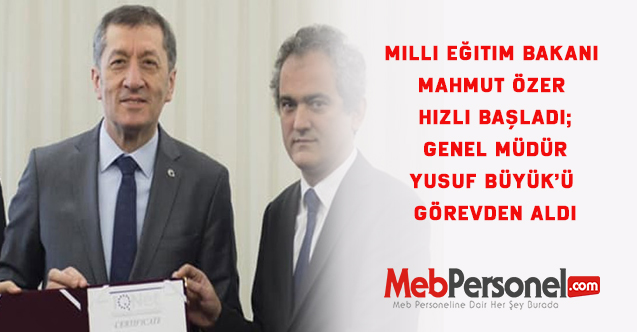 Bugün Bakan Mahmut Özer Birim amirleriyle yapılan toplantıda ; bazı arkadaşlarla yolumuzu ayıracağız, bazı arkadaşların yeri değişecek mesajını verdikten sınra ; Hayat Boyu Öğrenme Genel Müdürü Yusuf Büyük’ü görevden aldı .