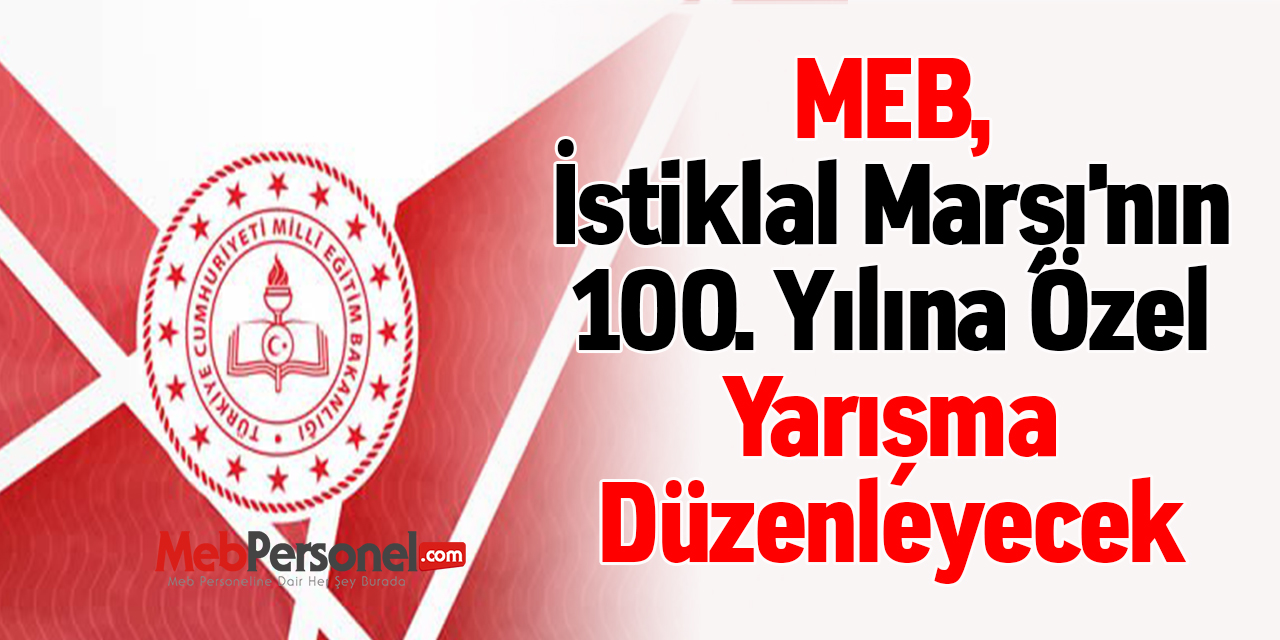 Milli Eğitim Bakanlığı (MEB), “İstiklal Marşı’nın Kabulü ve Mehmet Akif Ersoy’u Anma Günü’nün 100. Yıl Dönümü”ne özel mektup, resim, kısa film, grafiti, kara kalem, kompozisyon ve İstiklal Marşı’nı güzel okuma dallarında yarışma düzenleyecek.