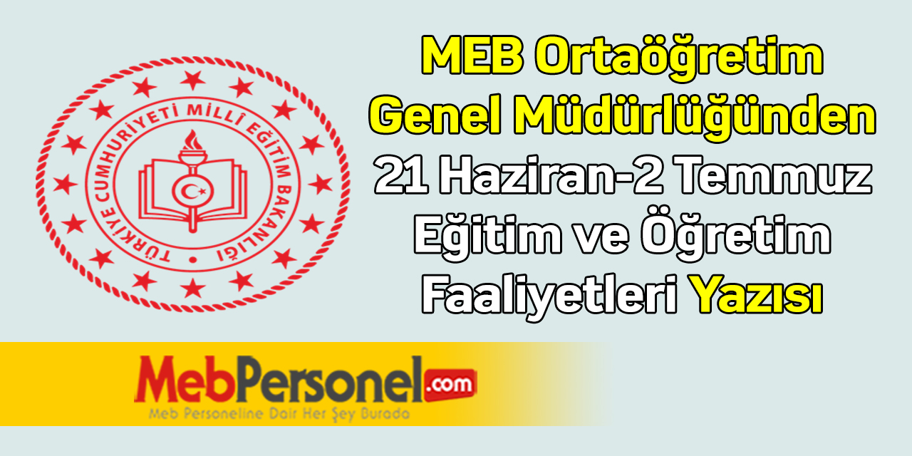 MEB Ortaöğretim Genel Müdürlüğü, 21 Haziran-2 Temmuz tarihleri arasındaki eğitim ve öğretim faaliyetlerine ilişkin resmi yazı gönderdi.