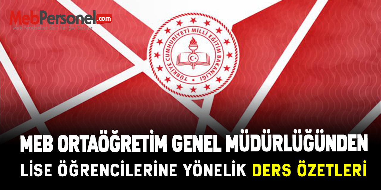 MEB ORTAÖĞRETİM GENEL MÜDÜRLÜĞÜNDEN LİSE ÖĞRENCİLERİNE YÖNELİK DERS ÖZETLERİ