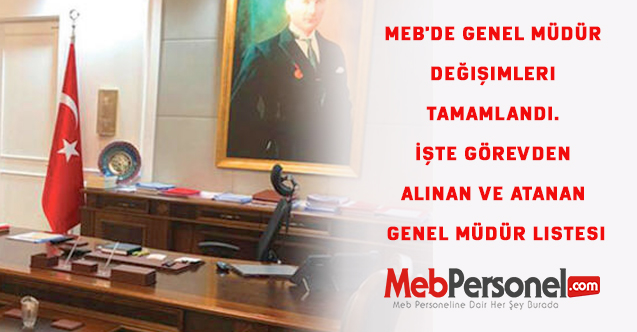 MEBPERSONEL.COM Özel Haber – MEB’de Bakan Değişikliği sonrası Genel Müdürlük düzeyinde atamalar son buldu.