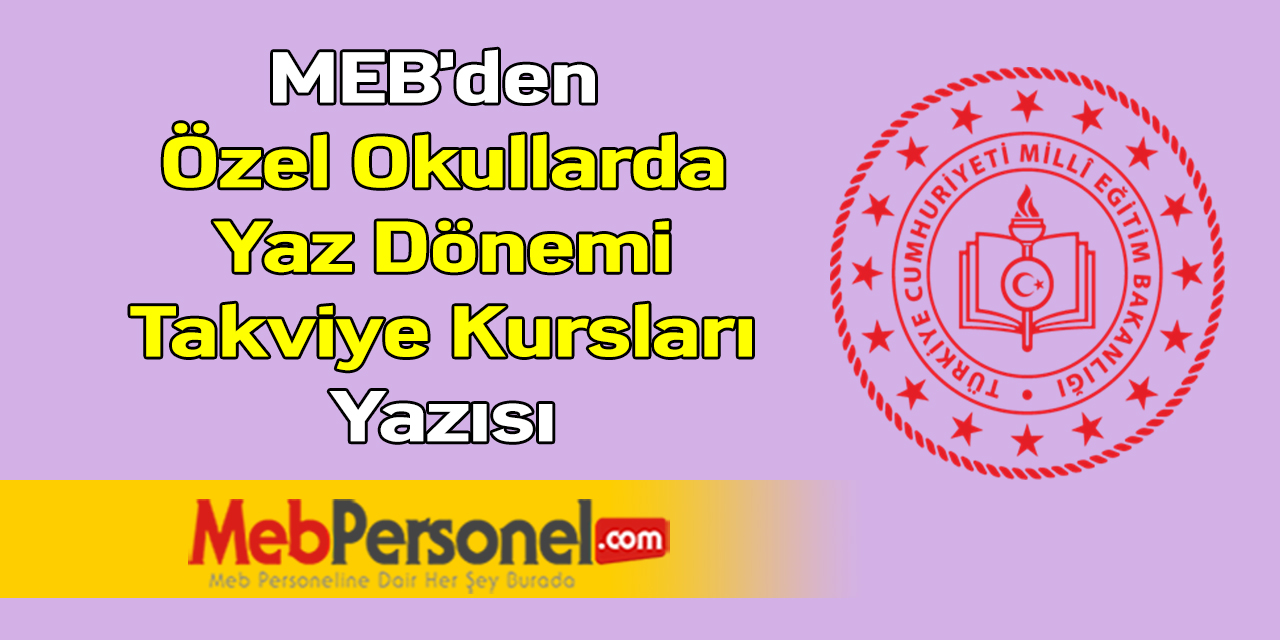 MEB Özel Öğretim Kurumları Genel Müdürlüğünün 14.06.2021 tarihli ve ”Özel Okullarda Yaz Dönemi Takviye Kursları” konulu resmi yazısı Mebpersonel.com’da…
