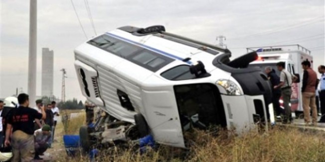 Kazada içerinde öğrencilerin bulunduğu servis devrildi.
