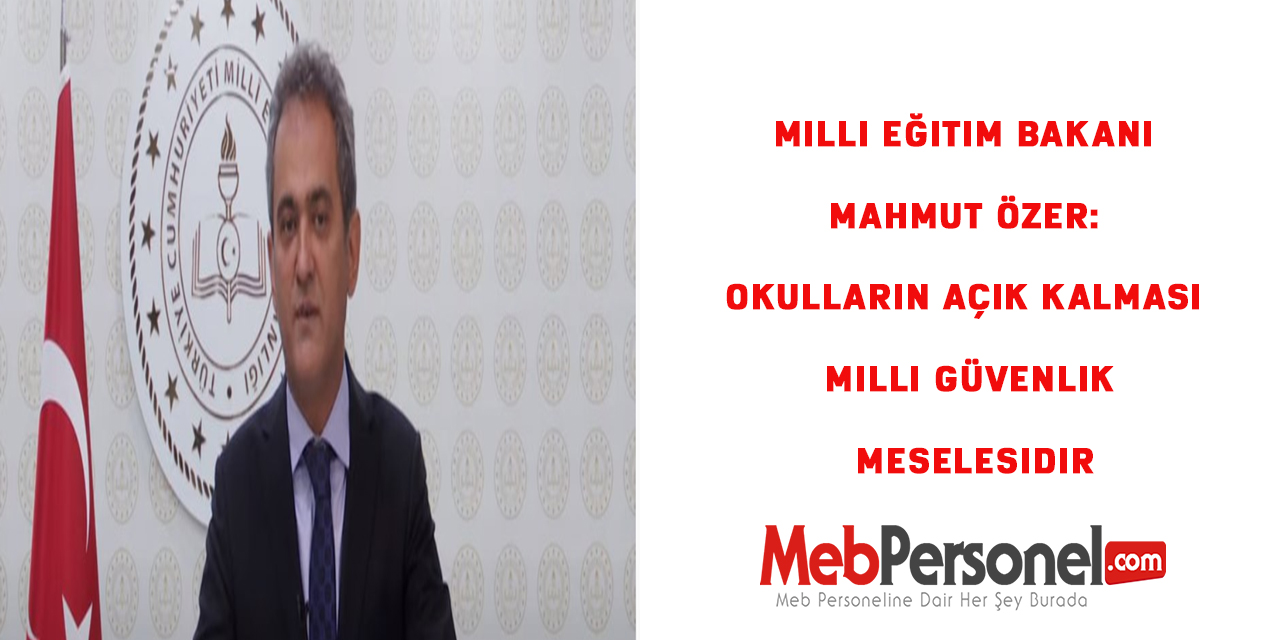 Milli Eğitim Bakanı Mahmut Özer, “Okulların açık kalması milli güvenlik meselesidir. Şimdi el birliği yapma zamanı. Okulların en son kapanan yerler olması için tüm vatandaşlarımızın fedakarlık yapması gerekiyor” dedi.