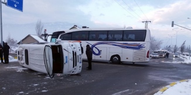 Kaza, sabah saatlerinde Seydişehir-Bozkır yolu Dumlupınar Kavşağında meydana geldi. Edinilen bilgiye göre, Emin Y. idaresindeki 34 ZY 1577 plakalı yolcu otobüsü ile Bülent K. idaresindeki 42 GBY 76 plakalı tarım lisesi öğrencilerini taşıyan servis minibüsü çarpıştı. Çarpışmanın etkisiyle devrilerek yan yatan servis minibüsüne bulunan 18 öğrenci yaralandı. Çevredekilerin haber vermesi üzerine olay yerine çok sayıda ambulans ve polis ekipleri sevk edildi. Minibüsten çıkarılan yaralı öğrenciler, olay yerindeki ilk müdahalelerinin ardından ambulanslar ve özel araçlarla Seydişehir Devlet Hastanesine kaldırılarak tedavi altına alındı. Öğrencilerin sağlık durumlarının iyi olduğu öğrenildi. Kaza sonrası yan yatan minibüs polis ve çevredekilerin yardımıyla düzeltildi.