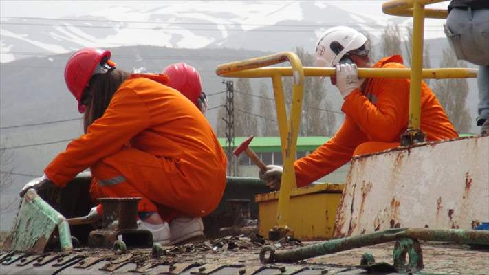 Van Gölü Feribot İşletmesi Müdürlüğü iskelesinde atıl durumdaki 4 metre genişliğinde ve 15 metre uzunluğundaki tekne, öğrencilerin uygulamalı eğitim alabilmeleri için okul bahçesine taşındı.