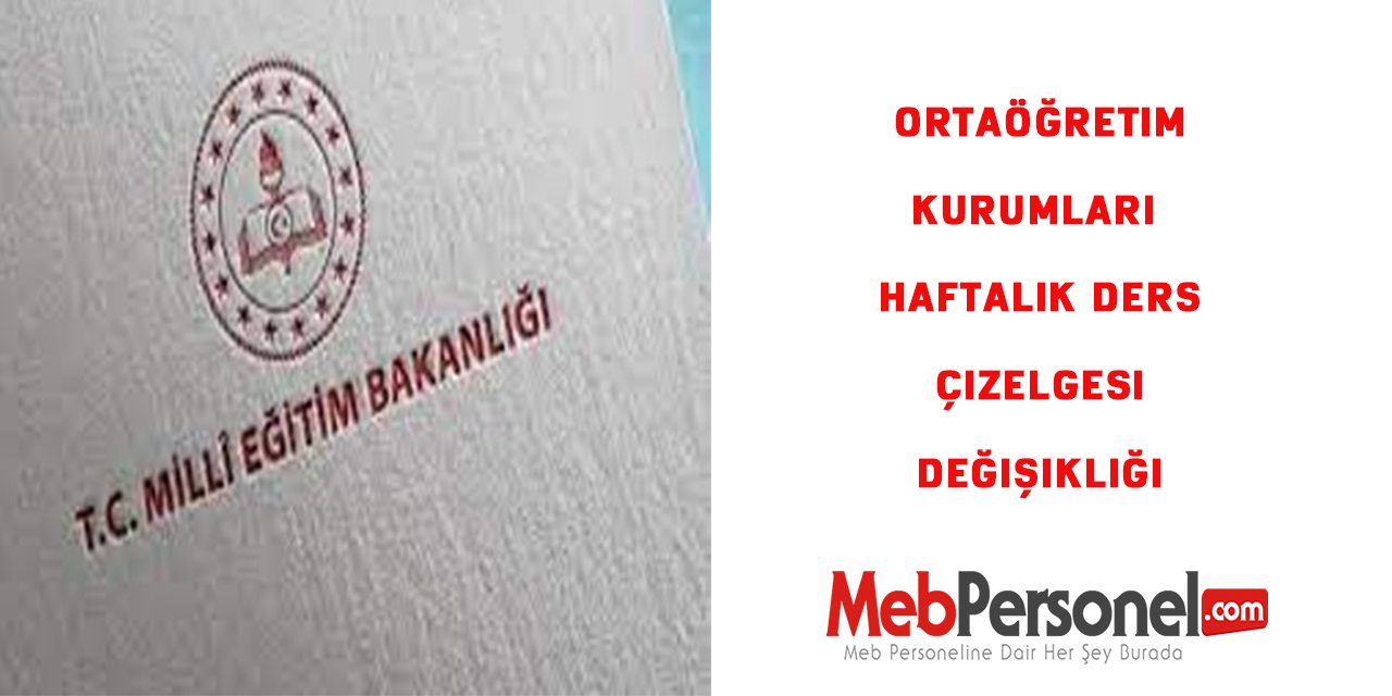 Özel Öğretim Kurumları Genel Müdürlüğü tarafından Ortaöğretim Kurumları Haftalık Ders Çizelgesi Değişikliği konulu resmi yazı İl Milli Eğitim Müdürlüklerine gönderildi.