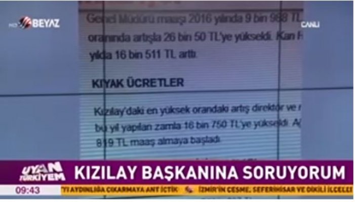 Gökçeklerin sahibi olduğu Beyaz TV’de yayımlanan ‘Uyan Türkiyem’ programının sunucusu Tahir Sarıkaya, Kızılay Genel Müdürü’nün aldığı maaşı eleştirerek Albayrak’a “Bu işe el atın” çağrısında bulundu.