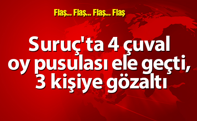 Şanlıurfa’nın Suruç ilçesinde polisin havaya ateş açarak durdurduğu otomobilde, okullara götürülmek üzere önceden mühürlendiği ileri sürülen 4 çuval oy pusulası ele geçti. Otomobildeki 3 kişi gözaltına alındı.