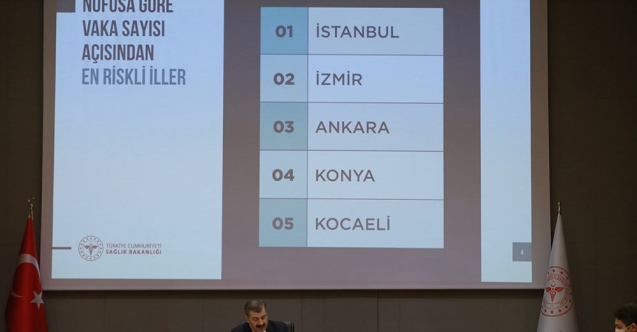 İllere göre vaka ve ölüm sayısının en yüksek olduğu ilin İstanbul olduğunu söyleyen bakan, İzmir’in de ikinci sırada olduğunu açıkladı.