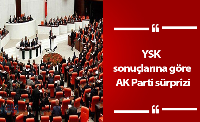 YSK sonuçlarına göre AK Parti , yüzde 42.56 oy oranıyla 295 milletvekili, CHP yüzde 22.65 oy oranıyla 146, HDP yüzde 11.70 oy oranıyla 67, MHP yüzde 11.10 oy oranıyla 49, İyi Parti de yüzde 9.96 oy oranıyla 13 milletvekilini Meclis’e soktu. Bağımsız adaylardan ise kimse Meclis’e giremedi.
