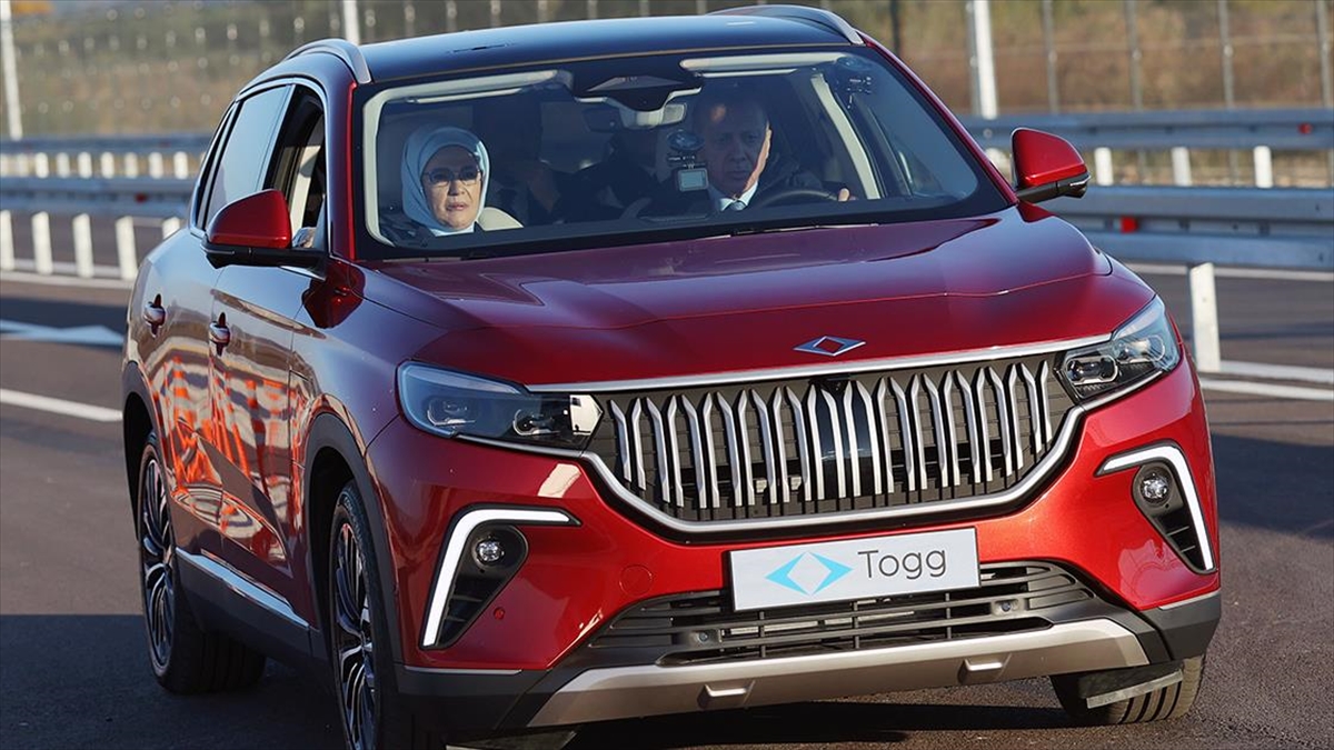 Togg logolu montlar giyen Cumhurbaşkanı Erdoğan ile eşi Emine Erdoğan, sonrasında Togg aracını test etti.