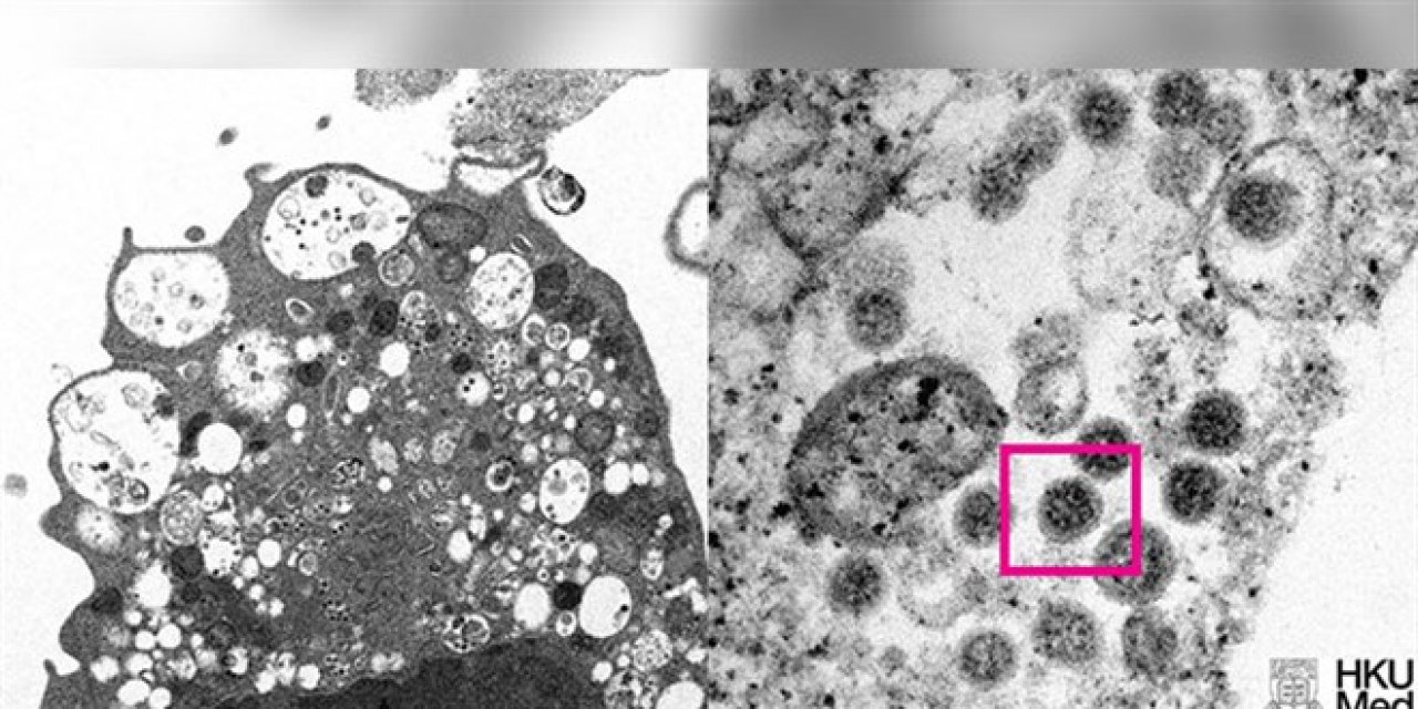 Üniversite tarafından yayınlanan fotoğrafın solunda, küçük siyah viral partiküller içeren şişmiş veziküllerle hücre hasarını gösteren, SARS-CoV-2 Omicron varyantı ile enfeksiyondan sonra bir maymun böbrek hücresinin (Vero E6) düşük büyütmeli elektron mikrografının yer aldığı ifade edildi.