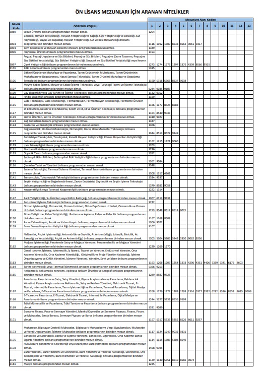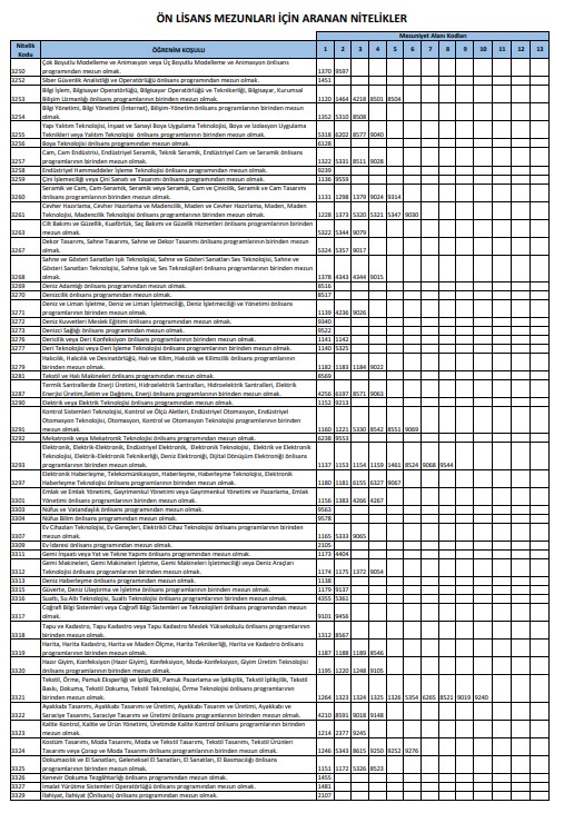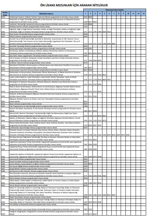 - TABLO-3.Ön Lisans Mezunlarının başvurabileceği kadrolar