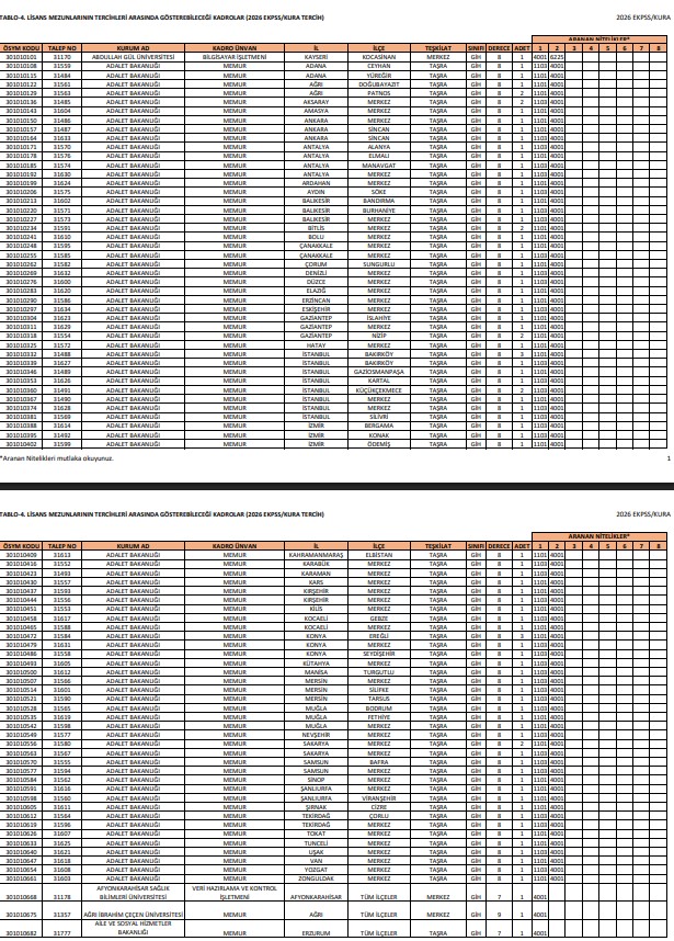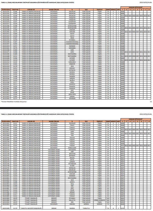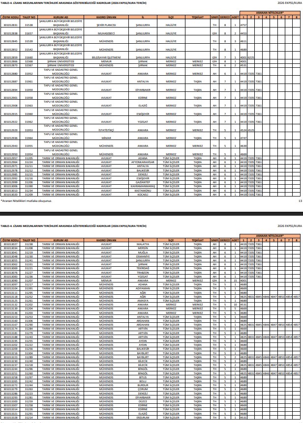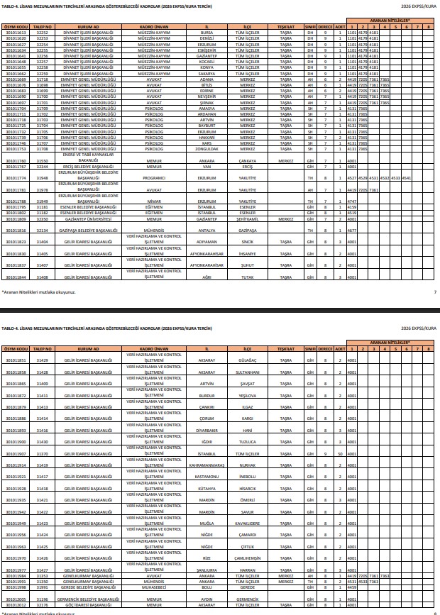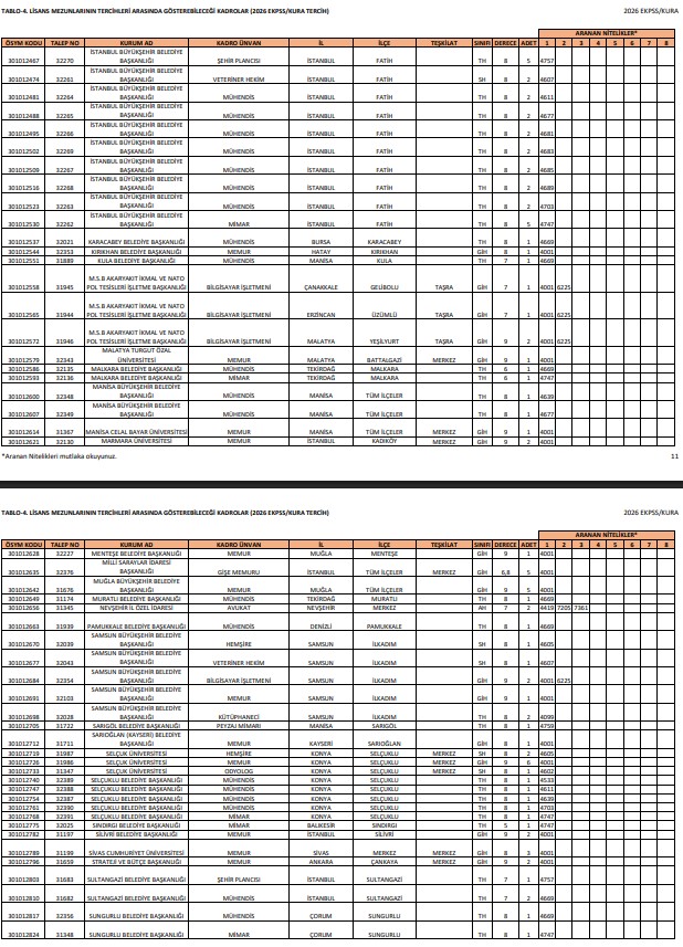 - TABLO-4.Lisans Mezunlarının başvurabileceği kadrolar