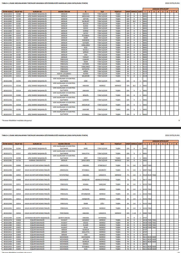 - TABLO-2. Lise mezunlarının başvurabileceği kadrolar