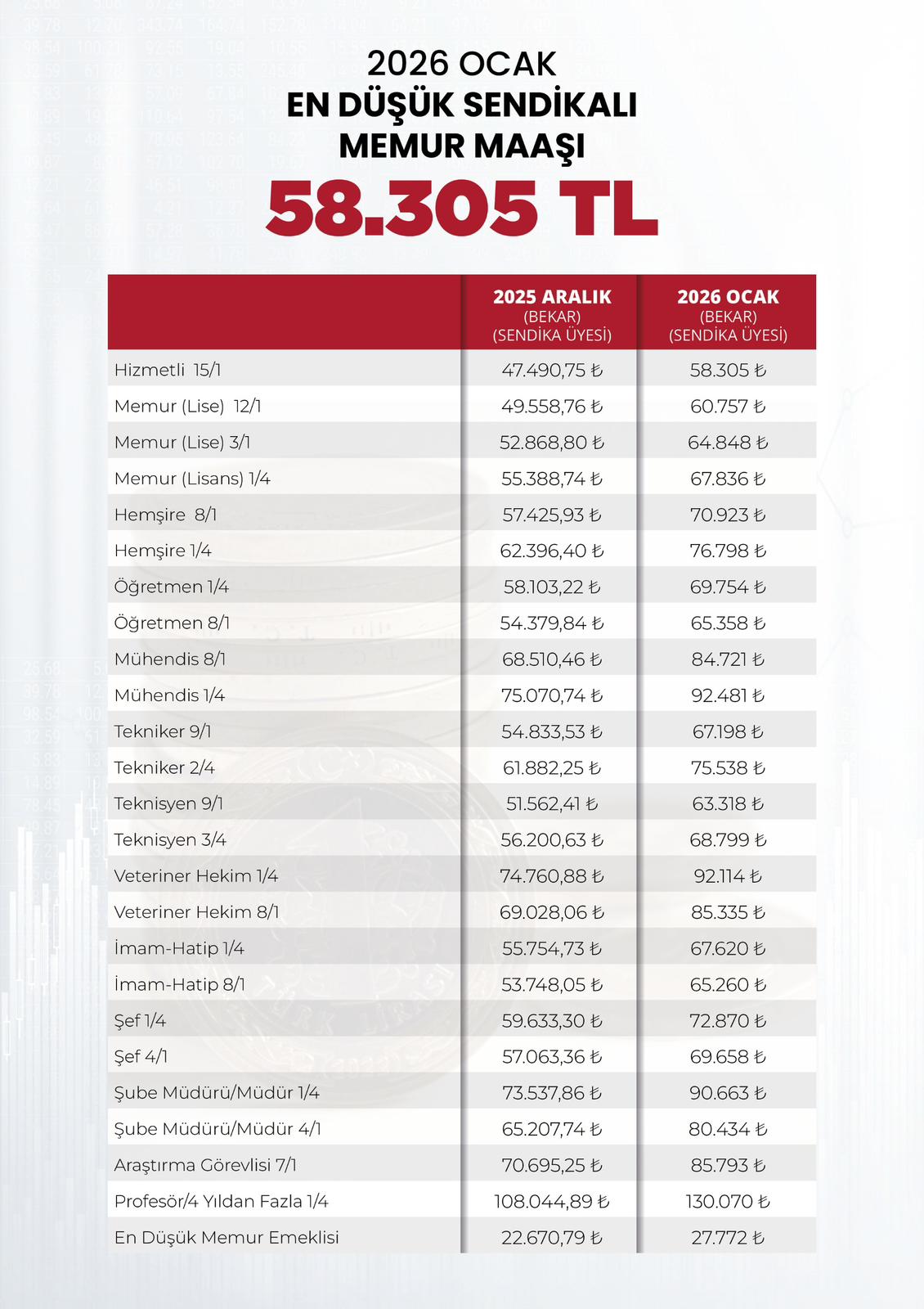Memurların Ocak ayı maaş zammı netleşti