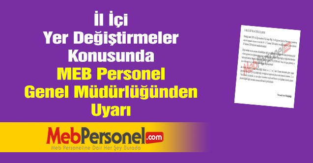 MEB Personel Genel Müdürlüğü, 2020 il içi yer değiştirmeler konusunda il milli eğitim müdürlüklerine uyarı yazısı gönderdi.