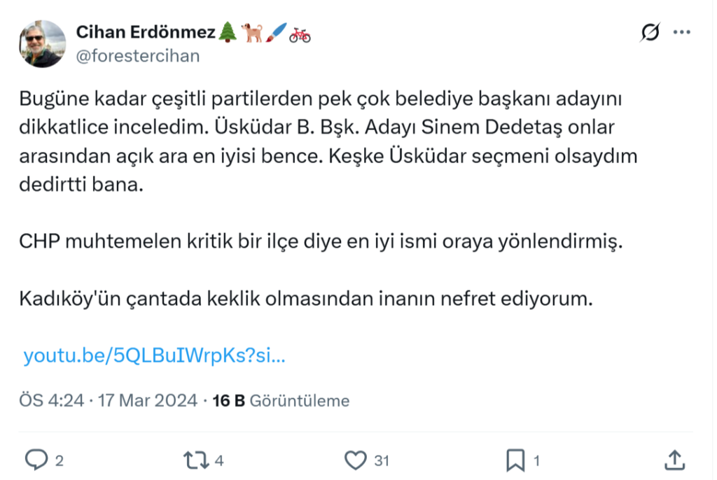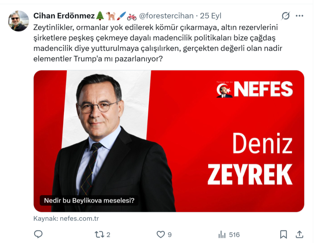 Ayrıca X (Twitter) hesabında da benzer siyasi içerikli paylaşımlar dikkat çekiyor: “Değerlerimiz Trumpa mı satıldı?” şeklinde yaptığı göndermeler,