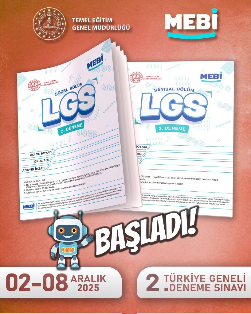 Milli Eğitim Bakanlığı Temel Eğitim Genel Müdürlüğü tarafından hazırlanan LGS (Liselere Geçiş Sistemi) 2. Deneme Sınavı, 02-08 Aralık 2025 tarihleri arasında tüm Türkiye’deki öğrencilerin katılımına açıldı. Liselere Geçiş Sistemi (LGS) öğrencileri için kritik bir hazırlık fırsatı sunan ve öğrencilerin kendi seviyelerini görmelerine olanak tanıyan Türkiye geneli 2. Deneme Sınavı başladı. Milli Eğitim Bakanlığı’nın resmî destek materyalleri kapsamında hazırlanan sınav, öğrencilerin gerçek sınav deneyimini yaşamaları ve eksiklerini tespit etmeleri açısından büyük önem taşıyor.