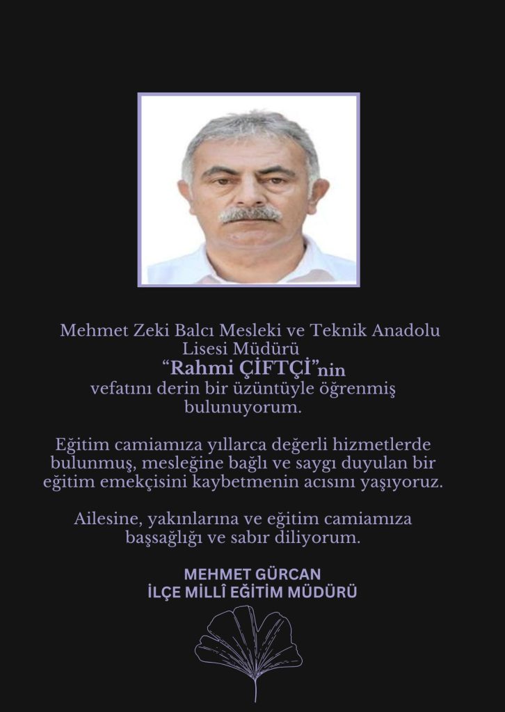 Gürcan, mesajının devamında merhum Rahmi Çiftçi’nin ailesine, yakınlarına ve tüm eğitim camiasına başsağlığı ve sabır temennisinde bulundu.