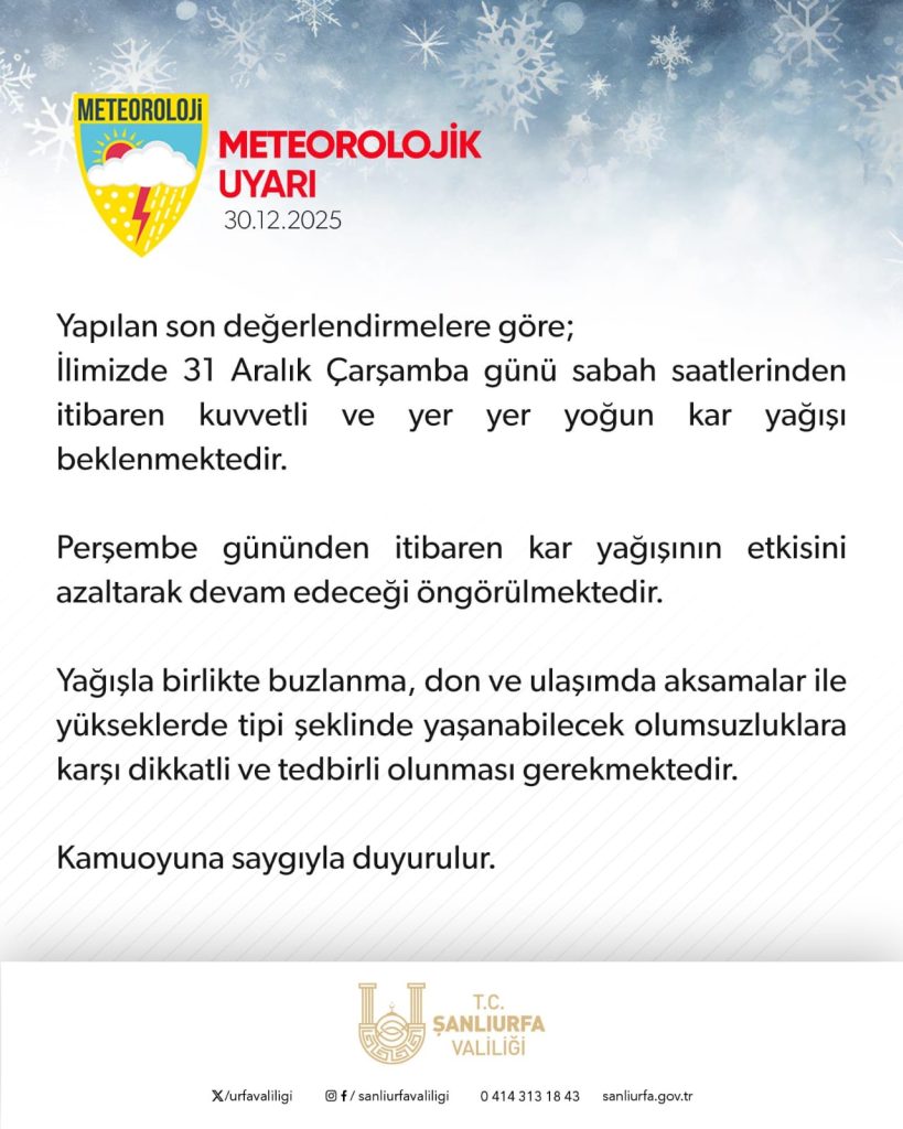 Son yapılan değerlendirmeler neticesinde Batman Valiliği ve Kahramanmaraş Valiliği 31 Aralık Çarşamba gününü tatil ilan etti. Her iki valilik de resmi sosyal medya hesapları üzerinden 31 Aralık Çarşamba gününün tatil ilan edildiğini kamuoyuna duyurdu.
