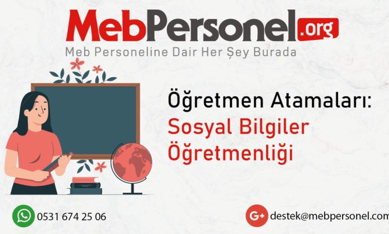 Sosyal Bilgiler Branşı Öğretmenleri ortaokullarda yapıyor. MEB Tebliğler Dergisi Ağustos 2023 tarihli yayınıyla Sosyal Bilgiler dersi ortaokul 5. 6. ve 7. sınıflarda 3 saat zorun ders olarak veriliyor. Sosyal Bilgiler branşına eklenen seçmeli derslerle birlikte öğretmen ihtiyacının arttığı bilinmektedir.