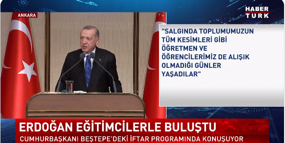 Erdoğan, “Hocalarımızın hakkını ödeyemeyeceğimizin farkındayız. Türkiye, Avrupa’da son 20 yılda öğretmen maaşlarını en çok iyileştiren, zorunlu ders saatini de en düşük tutan ülkedir. OECD’nin verilerine göre, Avrupa’da en az stres yaşayan öğretmenler bizim öğretmenlerimizdir.” dedi.