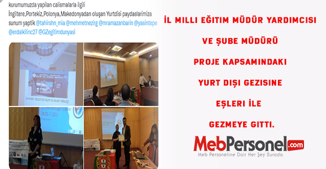 Mebpersonel.com sitemize iletişim formu aracılığıyla gönderilen iletide ; AB Erasmus Proje ortaklığında Portekiz’de yapılan 2.TPM oturumunda Şahinbey Belediyesi Bilim ve Sanat Merkezi tarafından yapılan çalışmalara Gaziantep İl Milli Eğitim Müdür Yardımcısı Metin Kılıçparlar ile Şube Müdürü Metin Mengilli ŞAHİNBEY Bilsem’in projesi ile eşlerini de yanlarına alarak Portekiz’e gezmeye gittikleri ifade edildi.